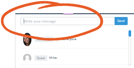 You can write and receive messages while you are online giving classes. These messages are public, so all members logged into your class will be able to read these. To write a message type the text in the box labeled ‘Write your message’ and click send.